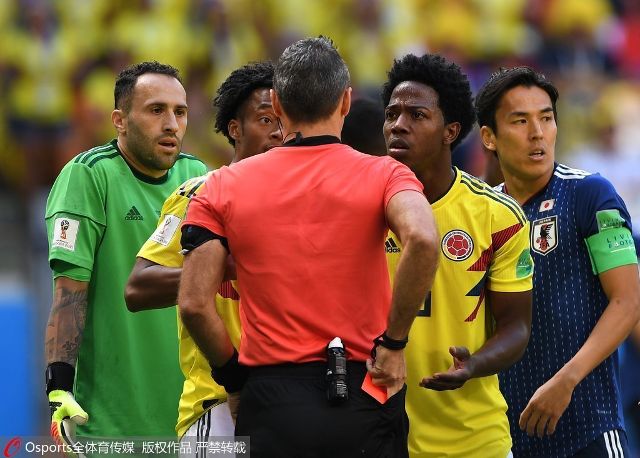莫尔多维亚竞技场上空弥漫着四年前的旧怨——2014年巴西世界杯,哥伦比亚曾4-1血洗日本。蓝武士球迷区的蓝色围巾在午后阳光中微微晃动,空气中夹杂着紧张与期待。哨响之后,哥伦比亚试图抢开局施压,法尔考、夸德拉多频频冲击日本右路防线。然而第3分钟,场上风向骤然逆转:大迫勇也右路突入禁区低射被奥斯皮纳扑出,香川真司跟进补射的瞬间,回追的哥伦比亚后腰卡洛斯·桑切斯在门线前抬起右臂,将球硬生生挡出-5-。当主裁判的指尖指向点球点、另一只手摸向红牌口袋时,卡洛斯·桑切斯的眼神从惊恐变为茫然——本届世界杯第一张红牌,开场仅176秒,世界杯历史上第二快的红牌就此诞生-38。哥伦比亚球员围住裁判申诉,法尔考叉腰摇头,J罗在替补席上双手掩面。看台上,哥伦比亚球迷区的呐喊声瞬间凝固,蓝白色旗帜无力垂下。第6分钟,香川真司面对门将奥斯皮纳,助跑、停顿,一脚推射稳稳命中中路,1-0-1-。这是日本队在世界杯历史上的最快进球(5分15秒),也是香川真司世界杯生涯的第二粒进球。