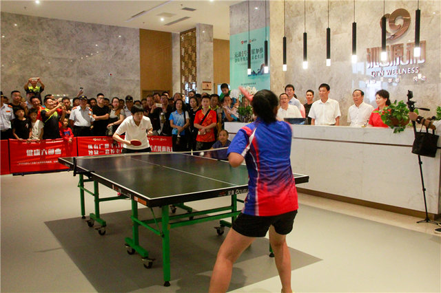 核心事件:樊振东现身群众赛事,与幸运球迷同台切磋,三位幸运球迷获得与世界冠军同台竞技的机会,定海路街道选手王林国以2比1的比分“力克”樊振东。-48